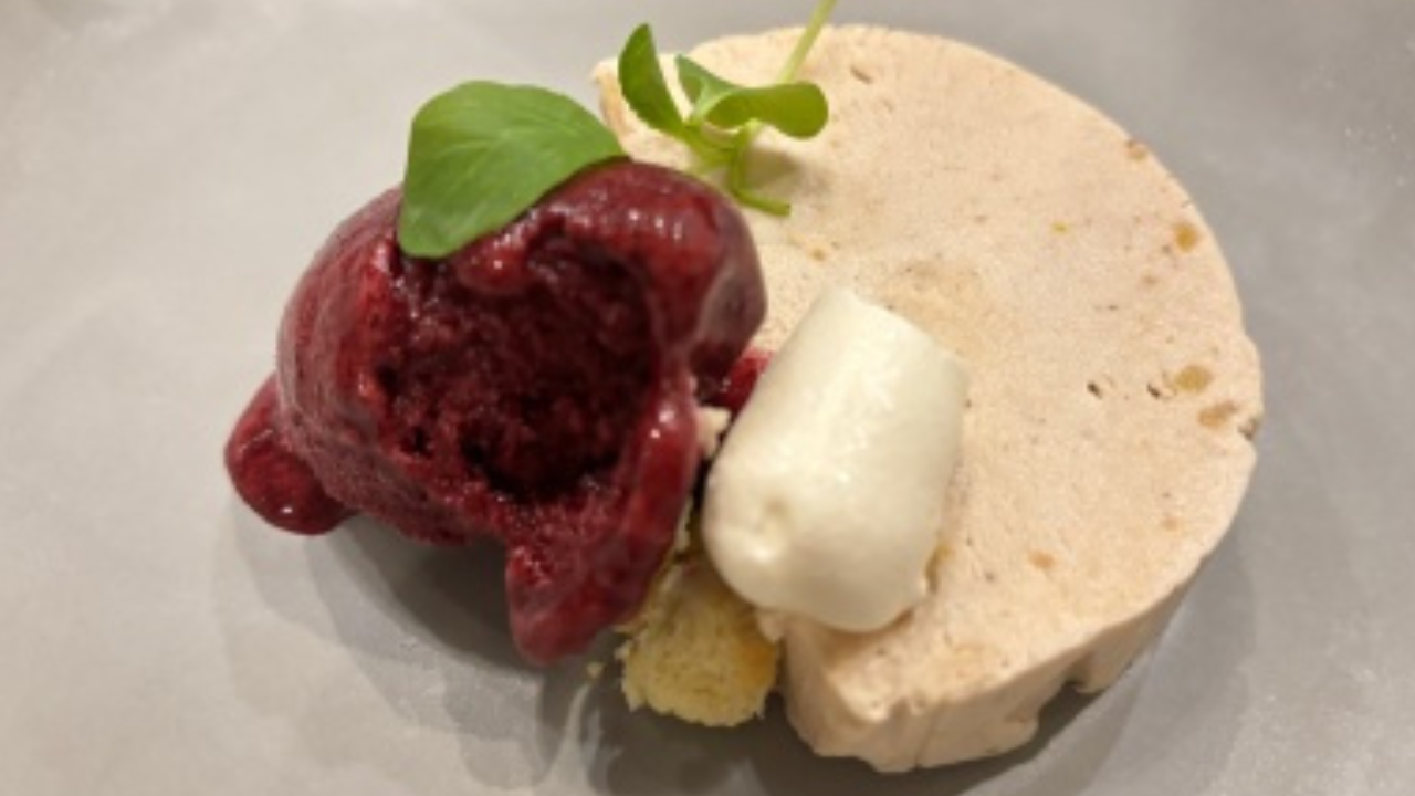 こちらの栗と柚子のムースとカシスソルベも、とっても好み。