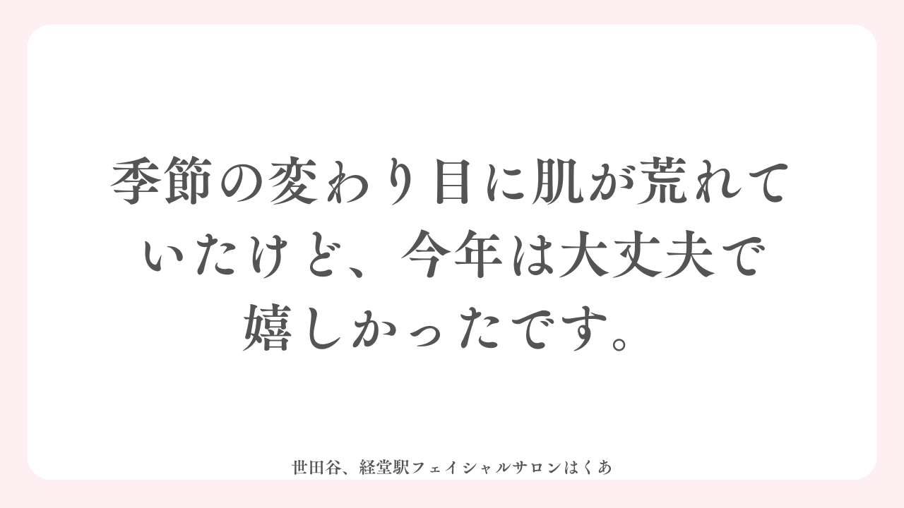 ● 季節の変わり目に肌が荒れていたけど、今年は大丈夫で嬉しかったです。