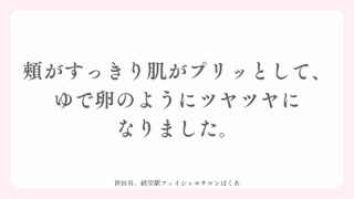 フェイシャルエステご利用の声 頰がすっきり肌がプリッとして、ゆで卵のようにツヤツヤになりました。 経堂駅で毛穴洗浄が人気のフェイシャルの口コミを紹介している記事になります。 フェイシャルエステご利用の声