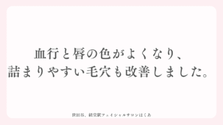 血行と唇の色がよくなり、詰まりやすい毛穴も改善しました。